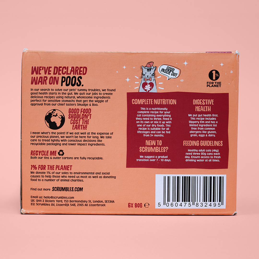 Yes! Our wet cat food tins are all nutritionally complete, meaning they contain all the essential nutrients, vitamins, and minerals your cat needs for everyday health. This includes the right balance of protein, fats, carbohydrates, plus added taurine (a vital amino acid for cats). You can confidently feed our wet food on its own or combine it with other complete cat foods to add variety, like our probiotic-packed dry food.