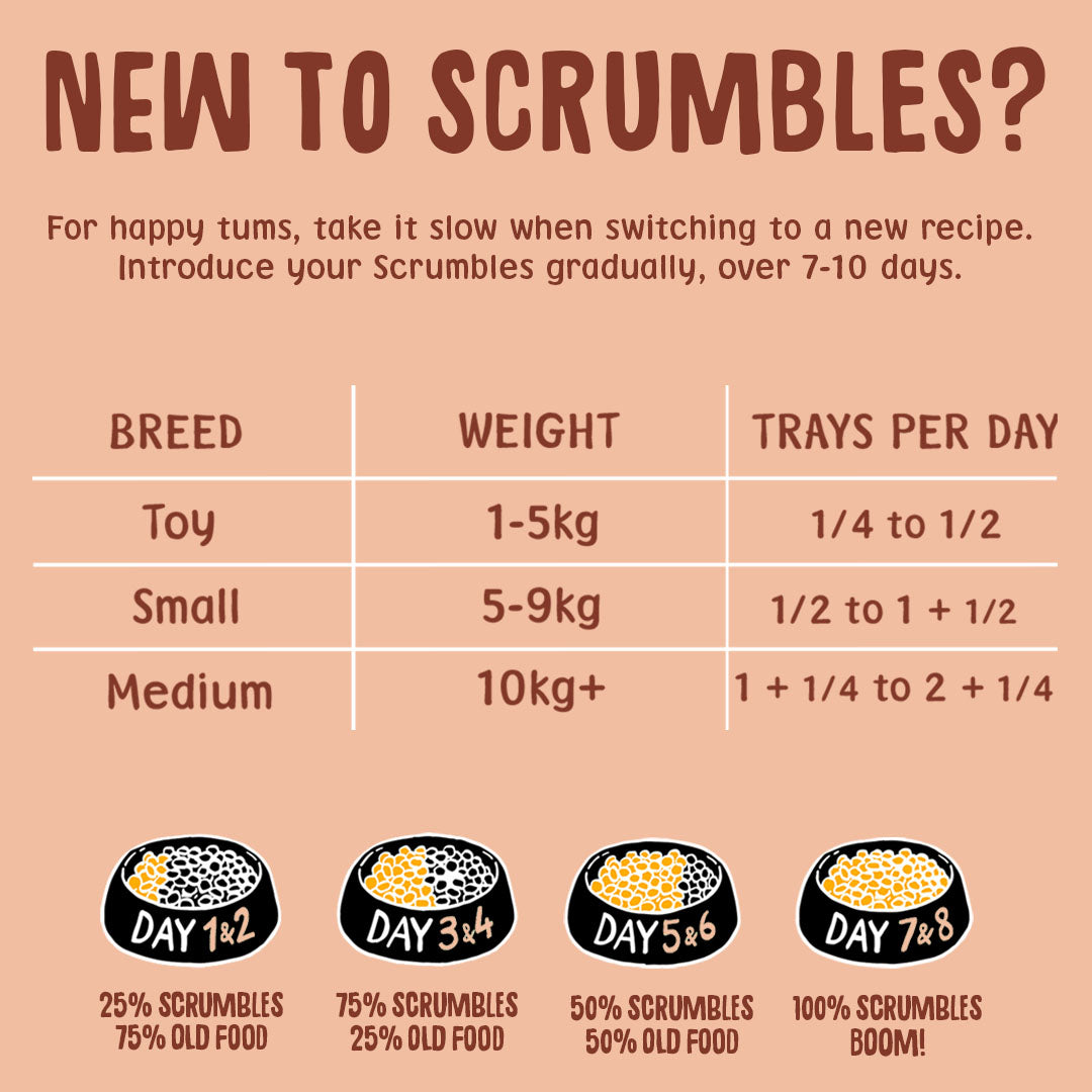 Treat your furry friend to the ultimate poultry feast with our Scrumbles Poultry Wet Dog Food Variety Pack! Featuring mouth-watering recipes made from single-source protein, 70% high-quality meat, each promises a delectable dining experience for your pooch. Crafted with added prebiotics and limited ingredients, this grain-free collection supports smooth digestion and provides a nutritious, balanced meal in every serving. Ideal for dogs with food sensitivities or those who LOVE poultry, this pack is the perfect way to keep mealtime exciting and wholesome. Suitable for all breeds and lifestages 8 weeks+.