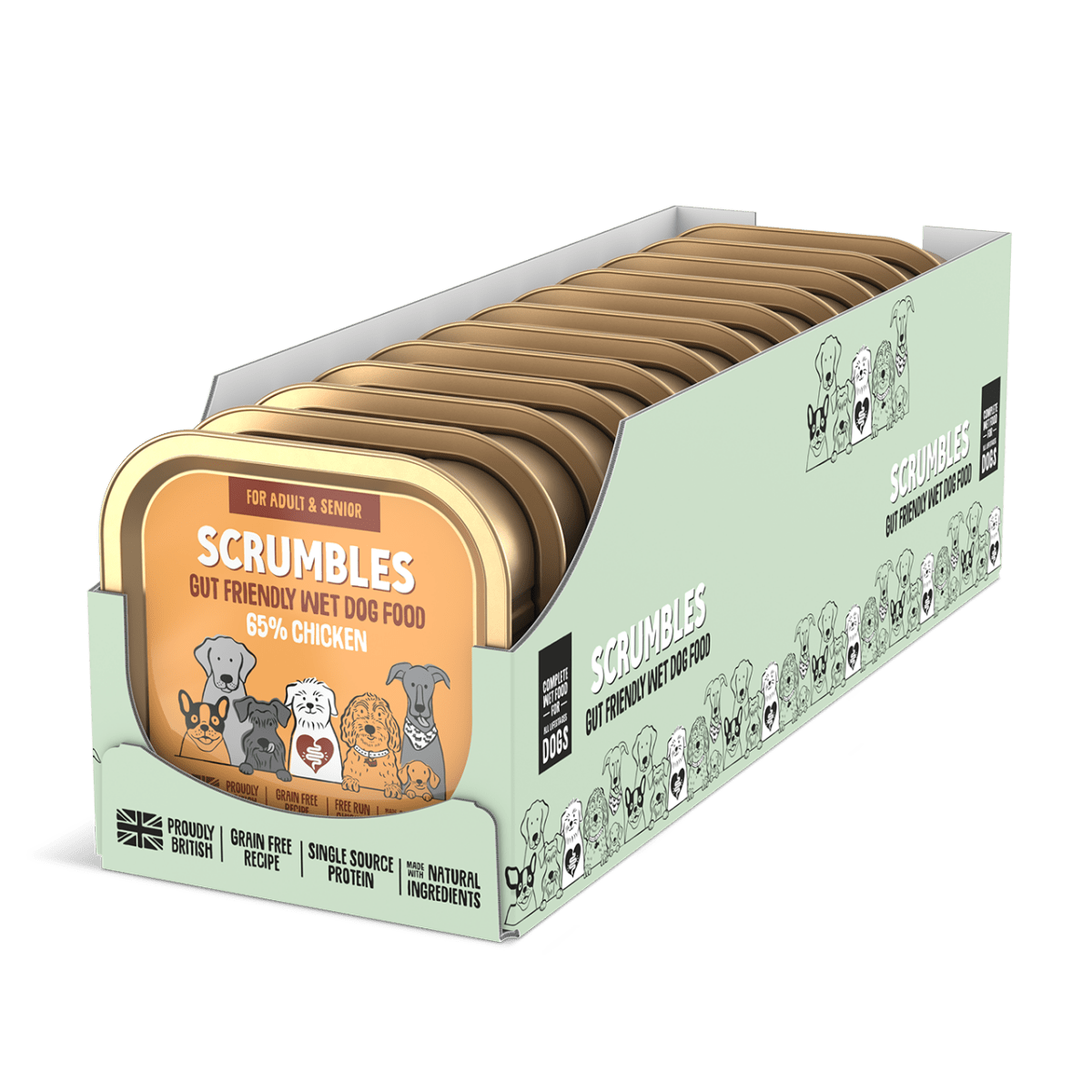 - 65% responsibly sourced chicken for dogs